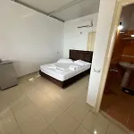 L'appartement dispose d'un balcon et d'un coin salon, ainsi que de conforts tels qu'une climatisation. L'immeuble est équipé d'une salle de bains dotée des serviettes. Une toilette séparée et une douche sont aussi disponibles.